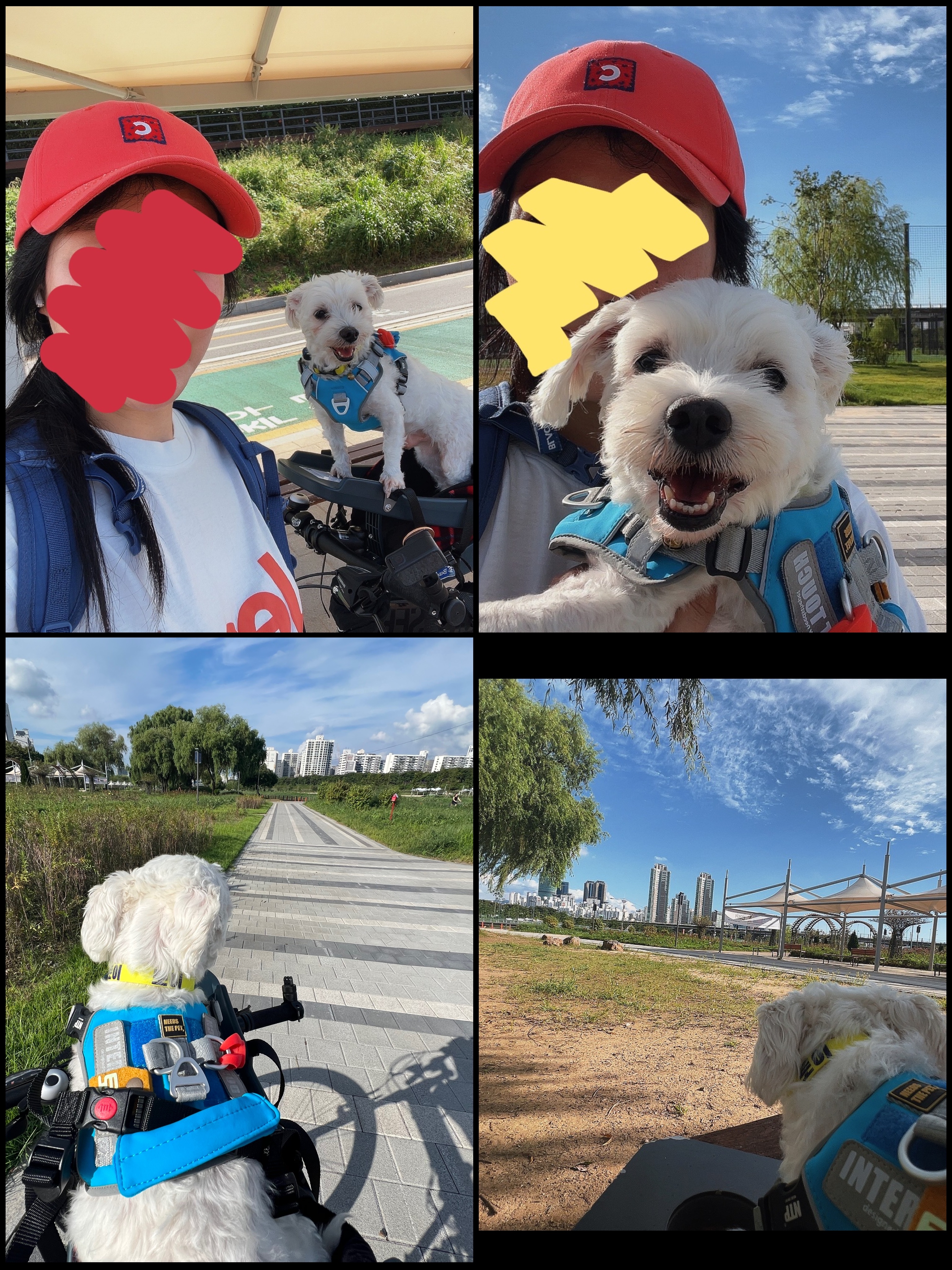 조금만 참으면 새로운 산책로로 가게 될 것이야~ㅋㅋ 큰 맘먹고 자전거를 타러 갔지만 햇빛이 너무 뜨거워서 나도 나지만 토이가 너무 덥고 답답할까 봐 중간중간 산책 할 곳이 보이면 내려서 한 번뛰고, 물도 마시고, 간식도 주고 하느라 거리가 좁혀지지 않았다.. :(
